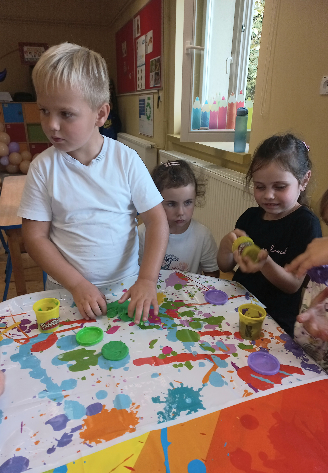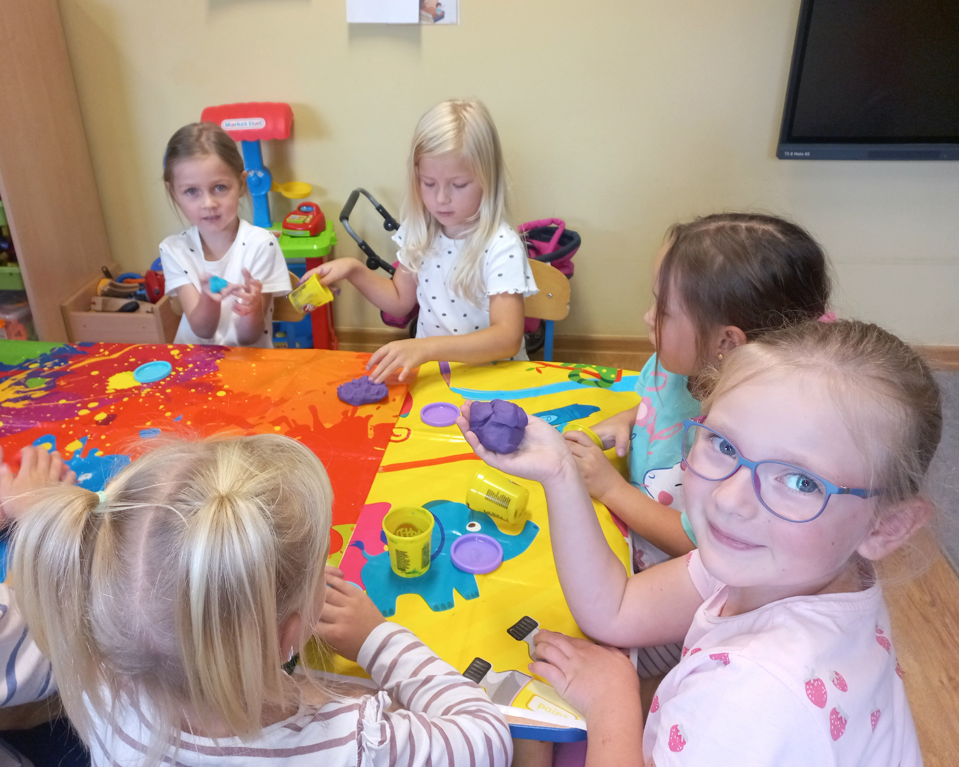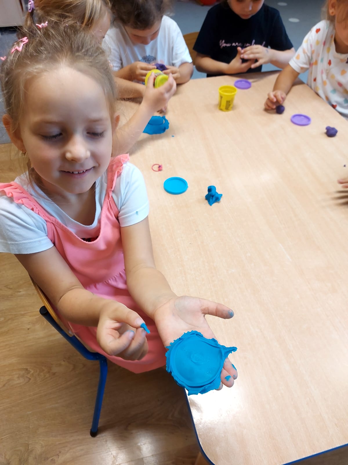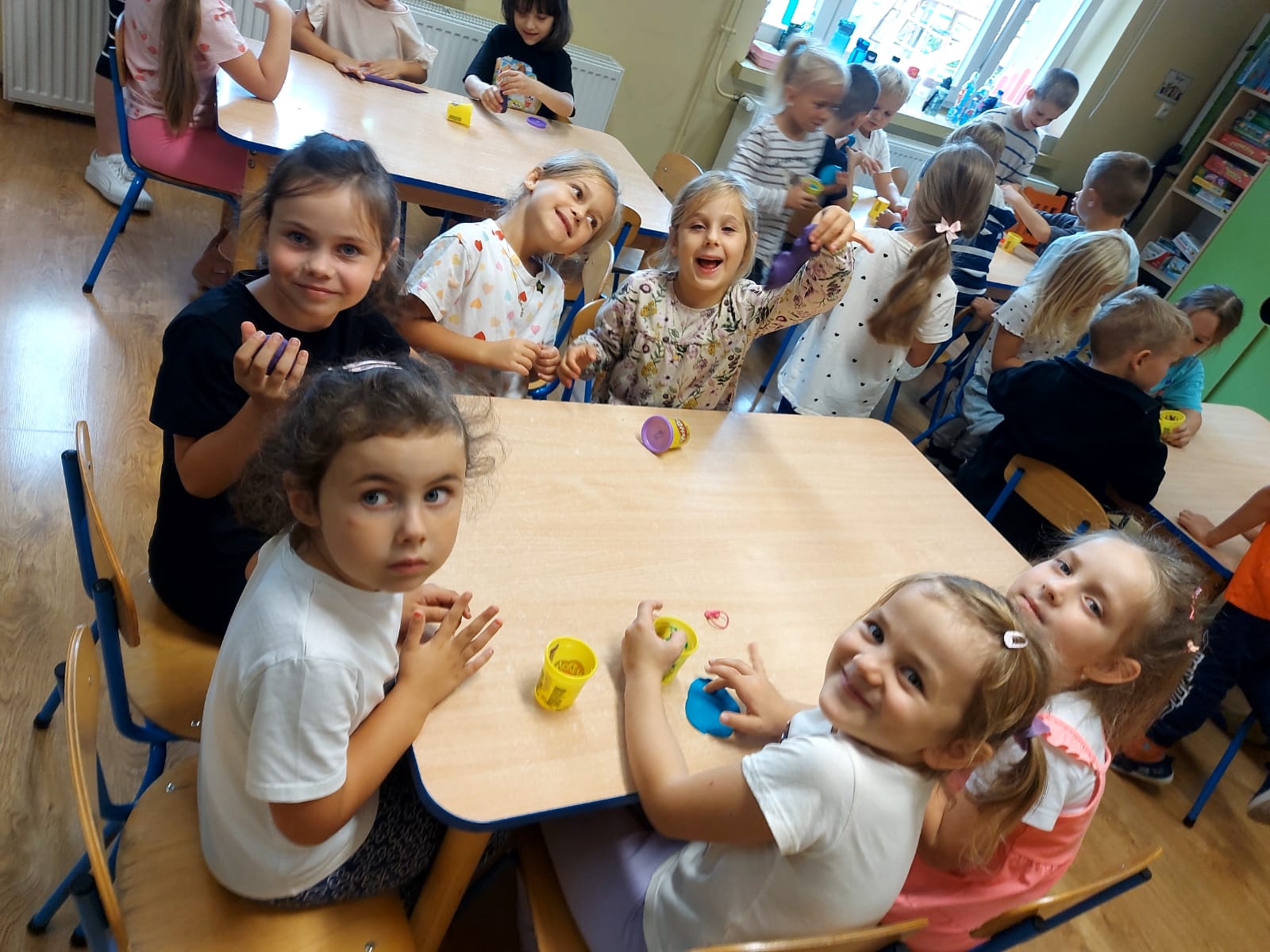 Dzień Przedszkolaka to niewątpliwie jeden z tych dni w kalendarzu, na który dzieci czekają z niecierpliwością. W naszej szkole przedszkolaki świętowały go z uśmiechem na ustach i roztańczonym krokiem, ciesząc się każdą chwilą pełną zabawy i radości. Dzieci wzięły udział w zawodach sportowych, podczas których mogły sprawdzić swoją zwinność, szybkość i umiejętność współpracy w drużynie. Rywalizacja dostarczyła wiele emocji, a wspólne kibicowanie kolegom wzmacniało przyjaźń i poczucie wspólnoty. Po aktywnościach sportowych przedszkolaki przeniosły się do świata wyobraźni, bawiąc się ciastoliną. Tworzyły kolorowe figurki, fantastyczne kształty i niezwykłe kompozycje, rozwijając zdolności manualne i kreatywność.