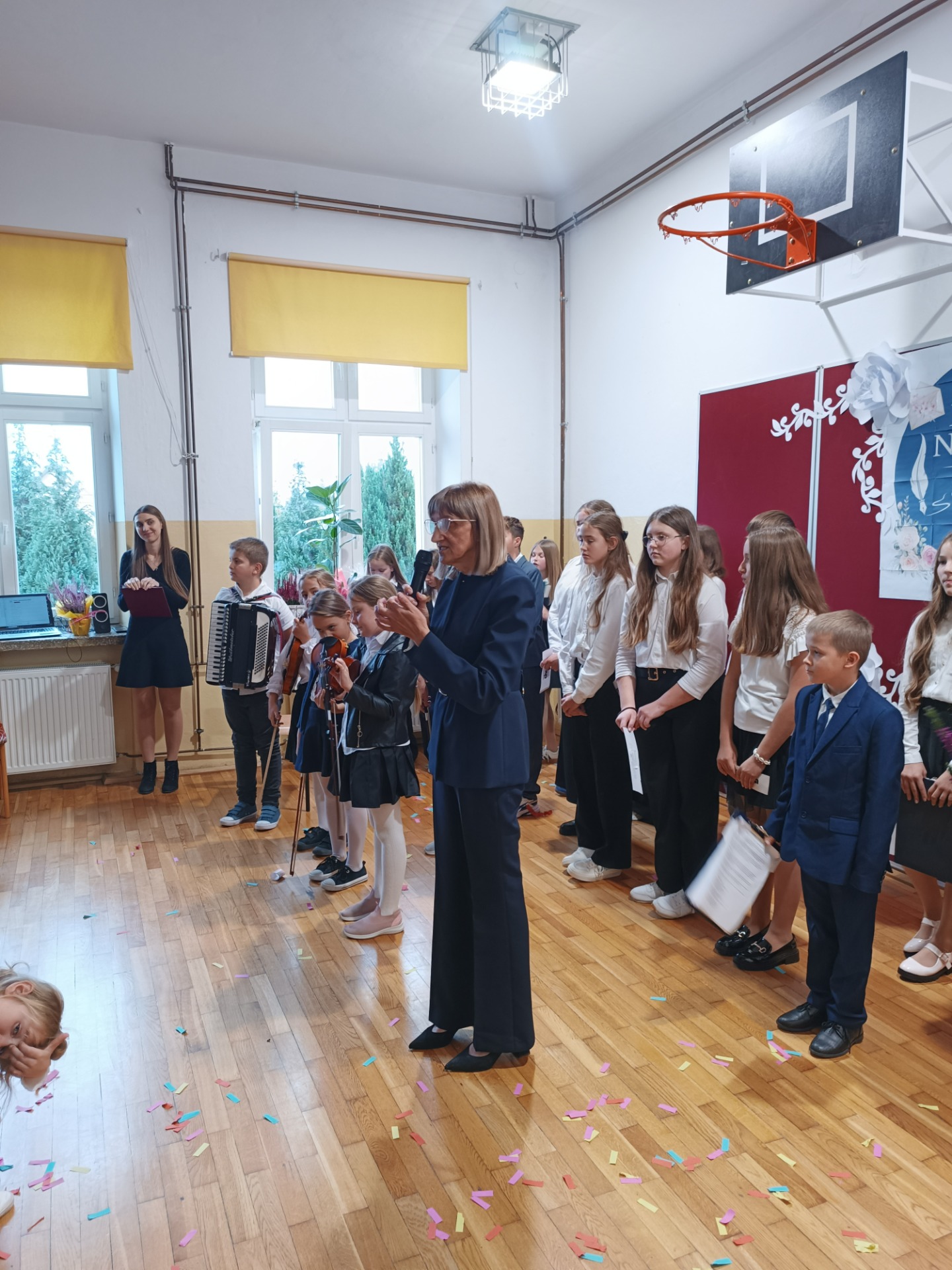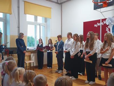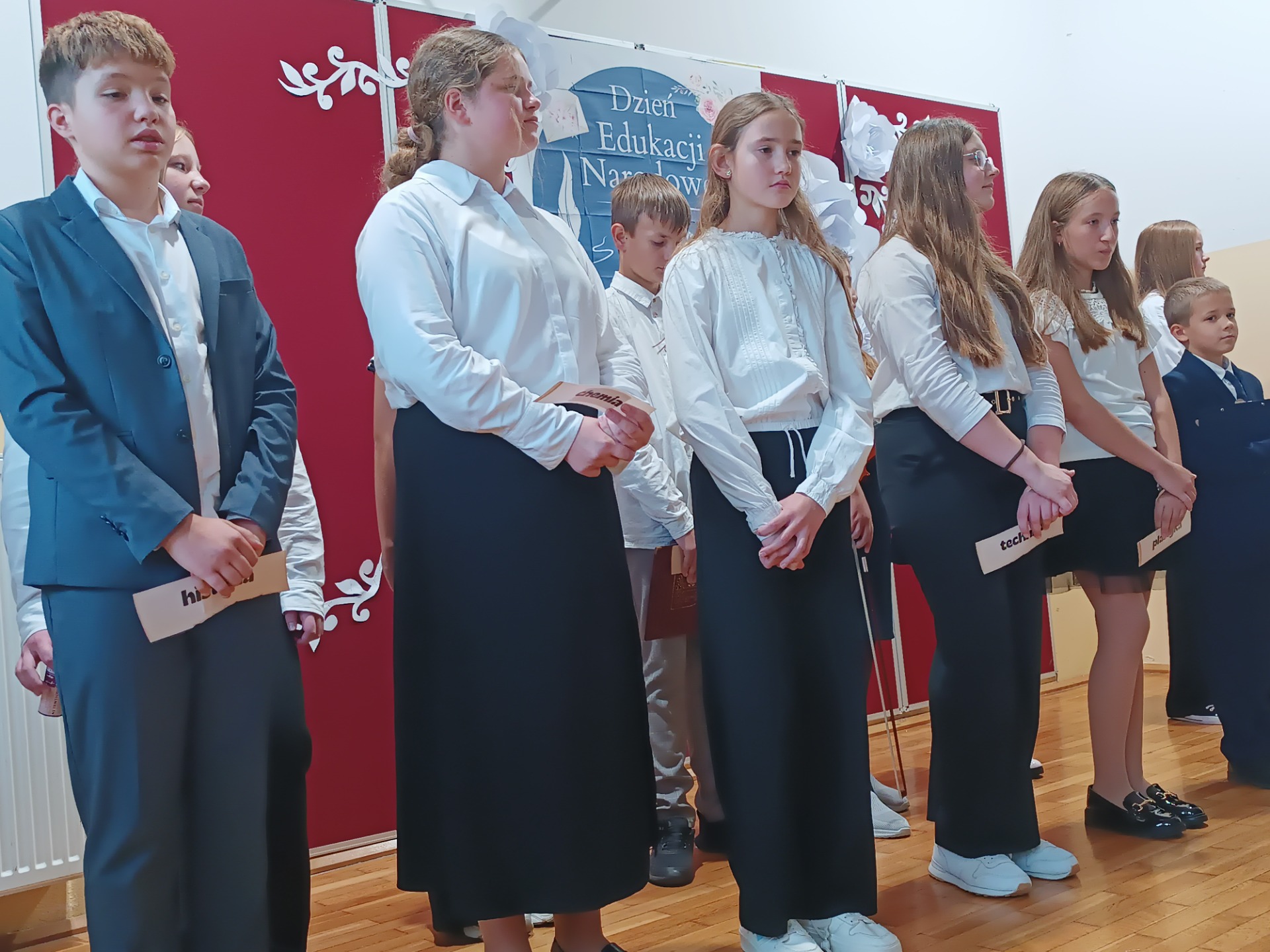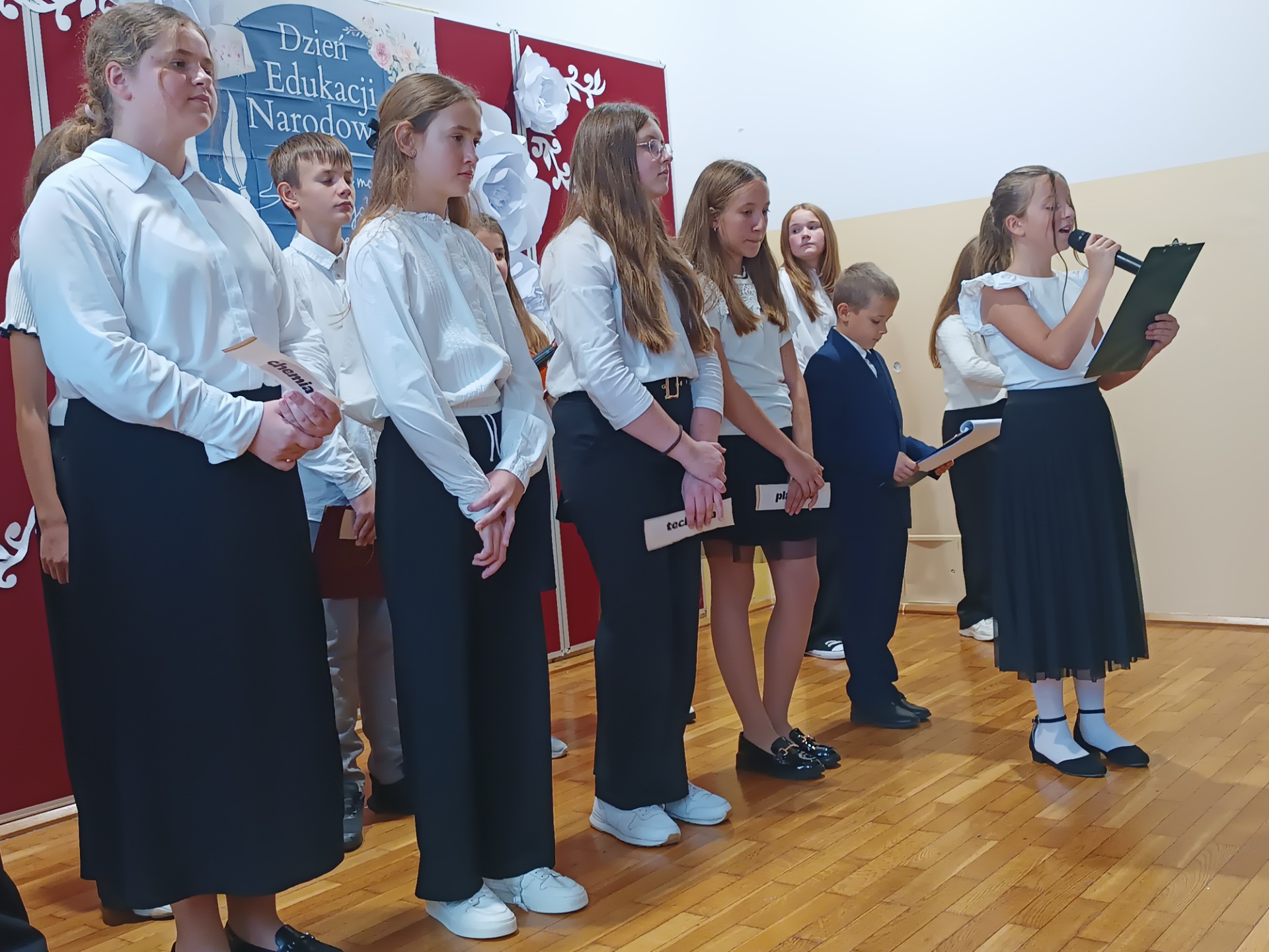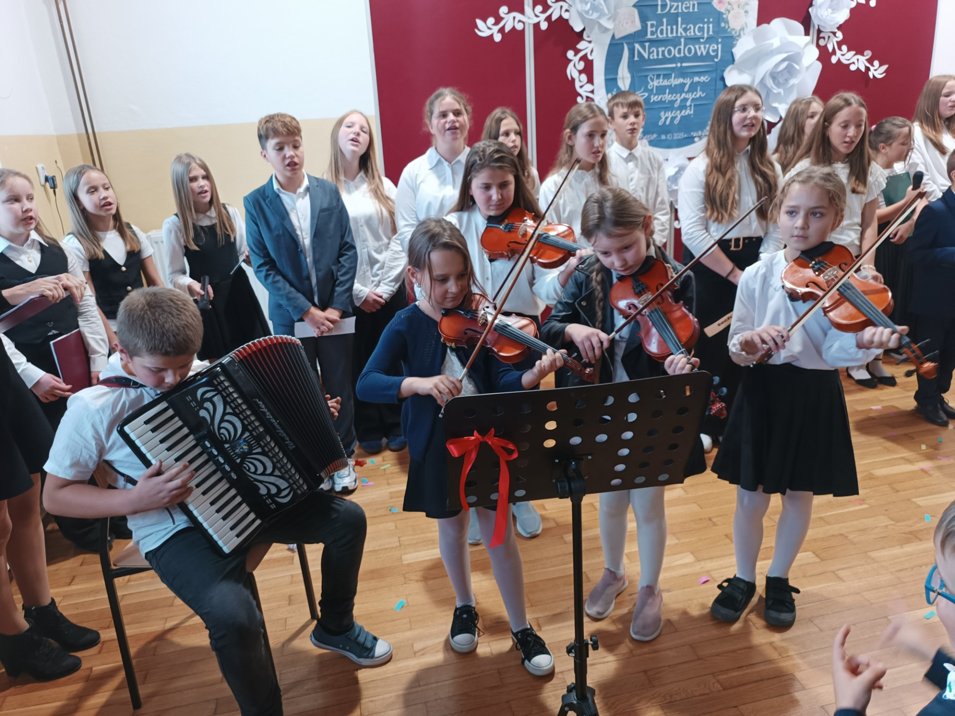 Z okazji Dnia Edukacji Narodowej uczniowie klas 5 i 6 przygotowali akademię, która na długo pozostanie w naszej pamięci. Uroczystość była pełna wzruszających chwil, pięknych słów i muzyki prosto z serca. Wspaniały koncert życzeń skierowany do Pani Dyrektor, nauczycieli, emerytowanych pracowników, rodziców, pracowników obsługi i administracji wywołały uśmiech i wzruszenie wśród obecnych.