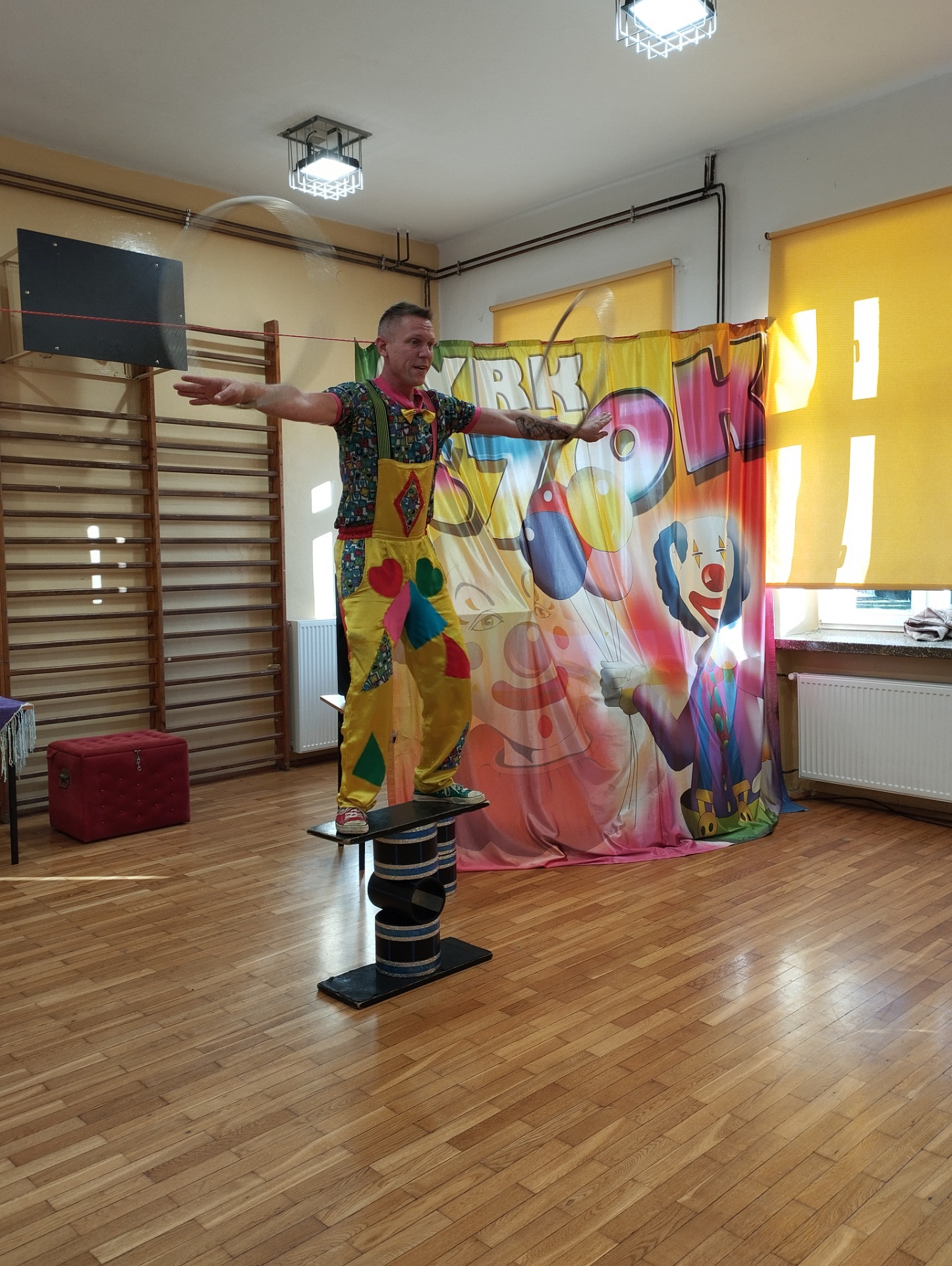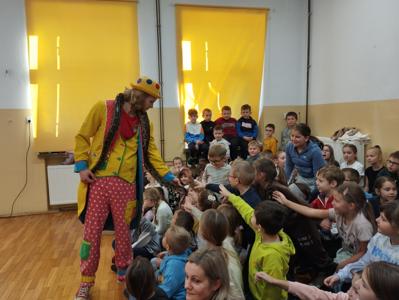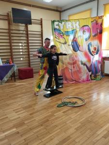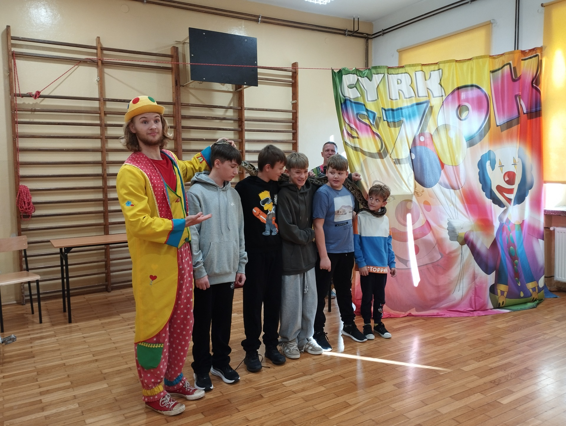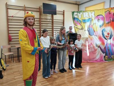 W naszej szkole gościliśmy artystów z cyrku "Szok". Uczniowie podziwiali triki cyrkowe, a także wzięli czynny udział w niektórych zadaniach. Widowisko dostarczyło wszystkim zebranym dużo miłych wrażeń i przeżyć, a wszyscy uczniowie z zapartym tchem śledzili występy cyrkowców. Widownia gromkimi brawami podziękowała artystom za niezwykły pokaz.