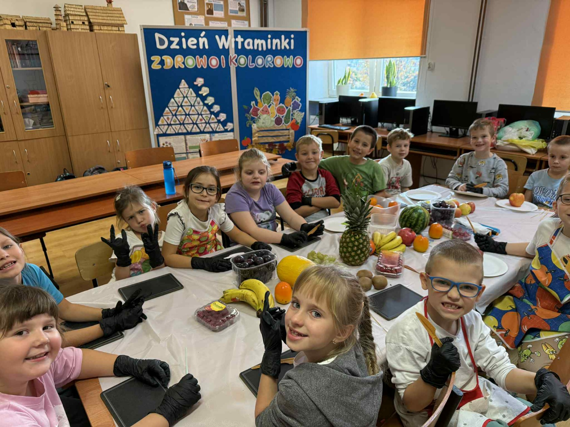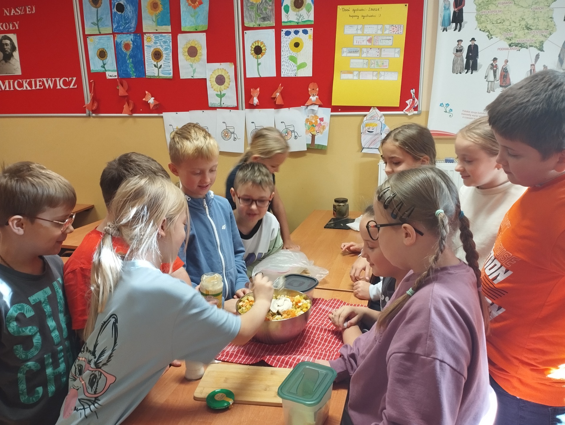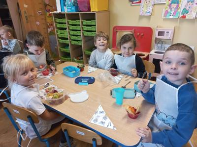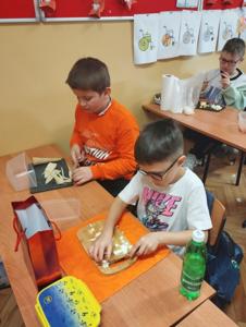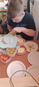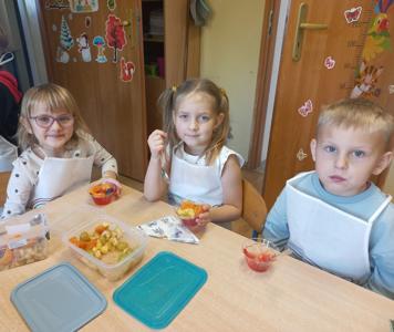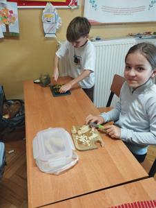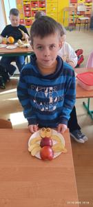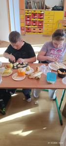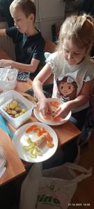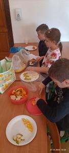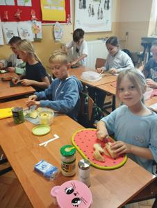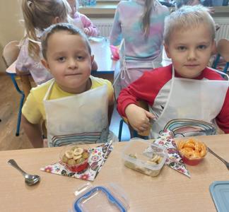 Najwięcej radości sprawiło dzieciom samodzielne przygotowanie „zdrowych smakołyków”. Dzieci z oddziału przedszkolnego zrobiły pyszne kanapki oraz galaretki z owocami, klasa I wykonała owocowe szaszłyki, klasa II stworzyła „zdrowe obrazki” na talerzykach, a klasa III wspólnie wykonała sałatkę jarzynową.
