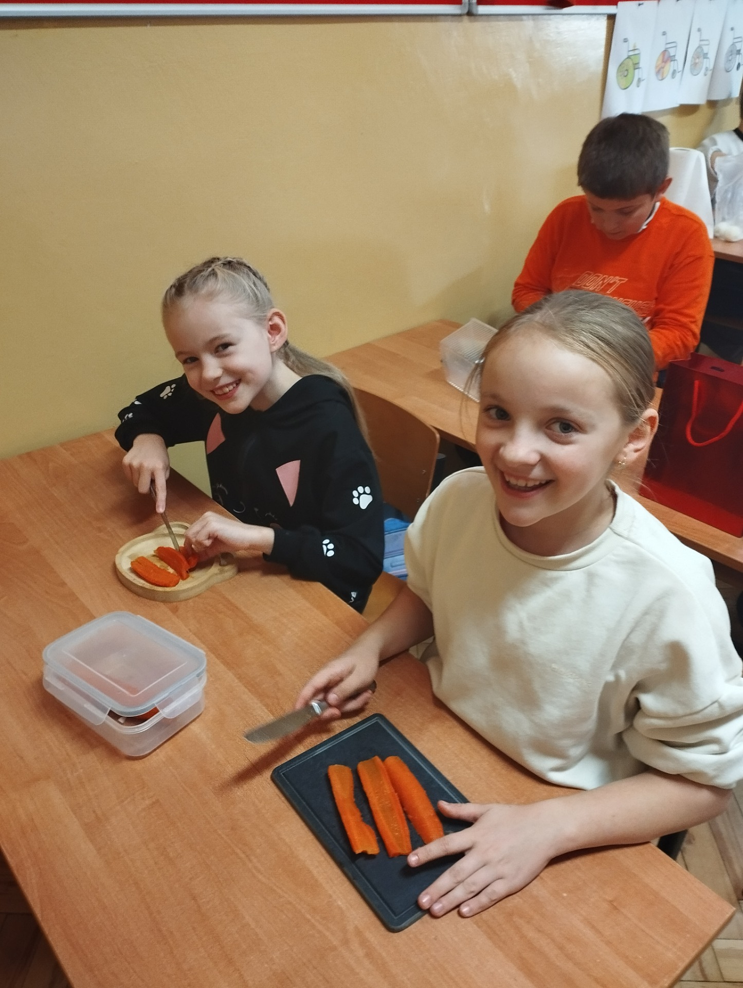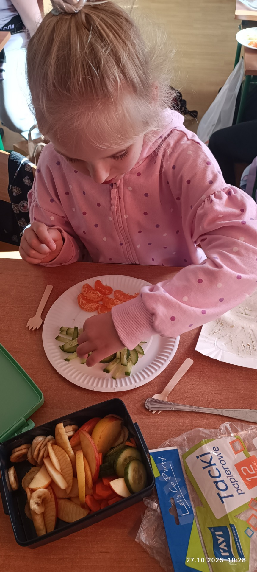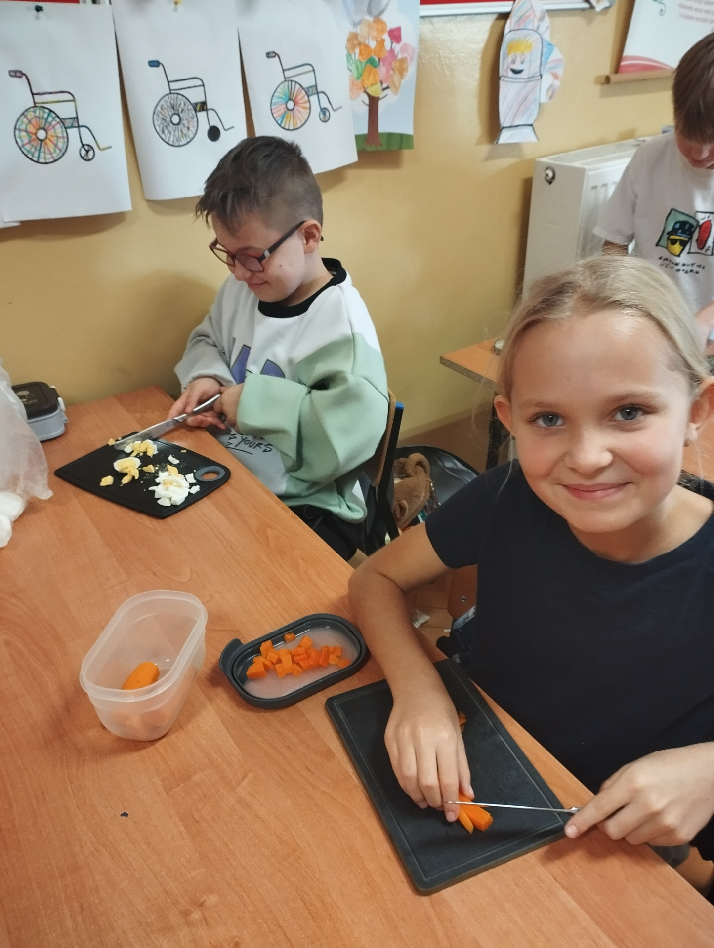 Najwięcej radości sprawiło dzieciom samodzielne przygotowanie „zdrowych smakołyków”. Dzieci z oddziału przedszkolnego zrobiły pyszne kanapki oraz galaretki z owocami, klasa I wykonała owocowe szaszłyki, klasa II stworzyła „zdrowe obrazki” na talerzykach, a klasa III wspólnie wykonała sałatkę jarzynową.