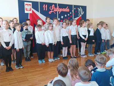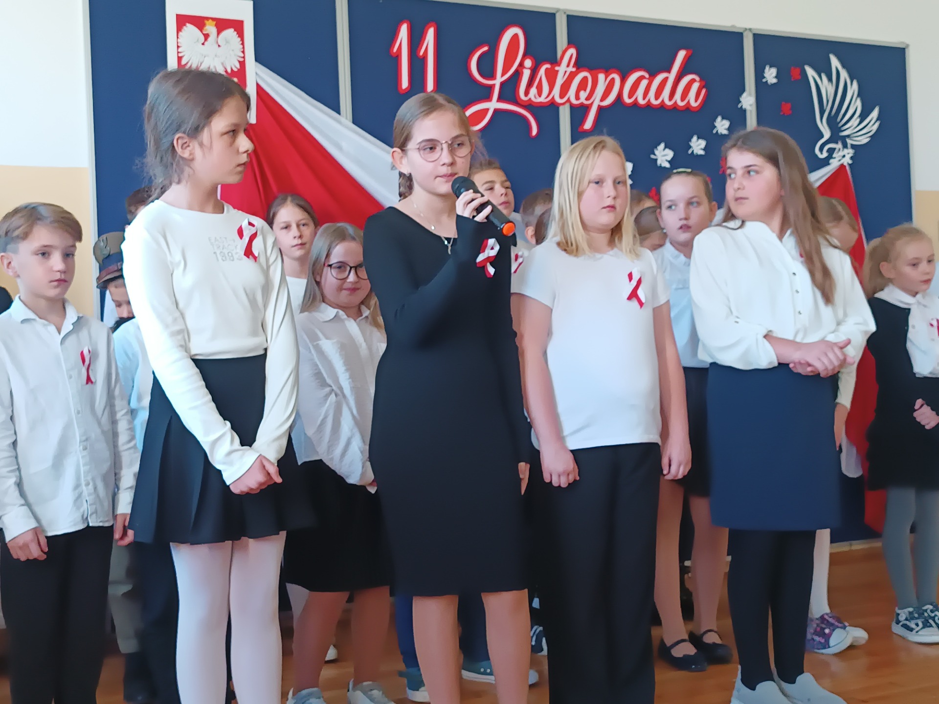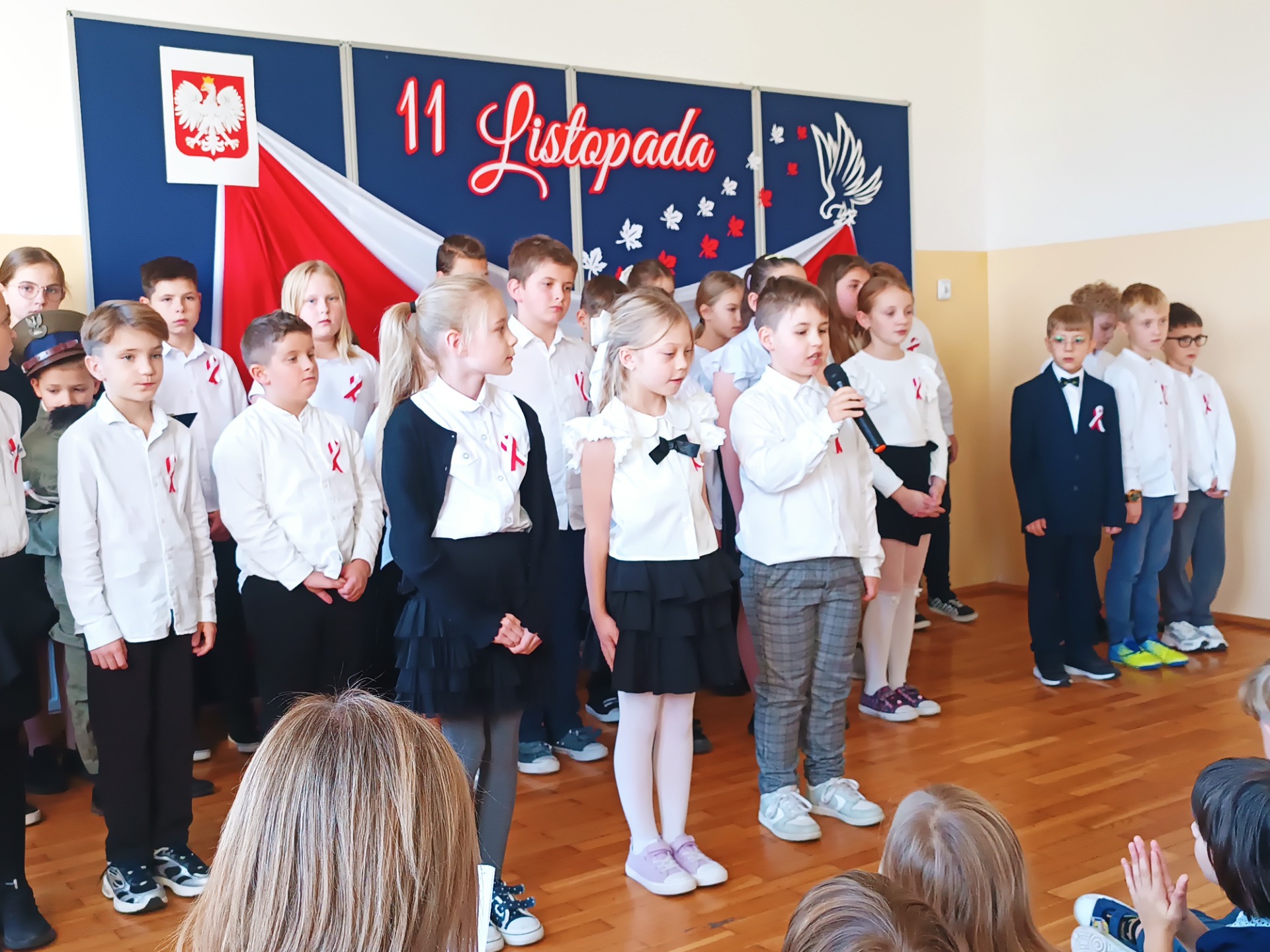 11 listopada 1918 roku to niezwykle ważna data w historii naszej Ojczyzny. Po 123 latach niewoli nasz kraj odzyskał upragnioną wolność. W ramach obchodów Święta Niepodległości w naszej szkole odbyła się uroczysta akademia przygotowana przez uczniów klas III i V. Zebraliśmy się, aby wspólnie uczcić pamięć tych, którzy oddali swoje życie za wolną Polskę.