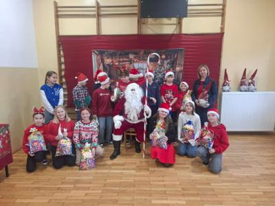 Mikołaj odwiedził wszystkie klasy, rozmawiał z dziećmi, wysłuchał przygotowanych piosenek, a następnie wręczył każdemu drobny upominek.