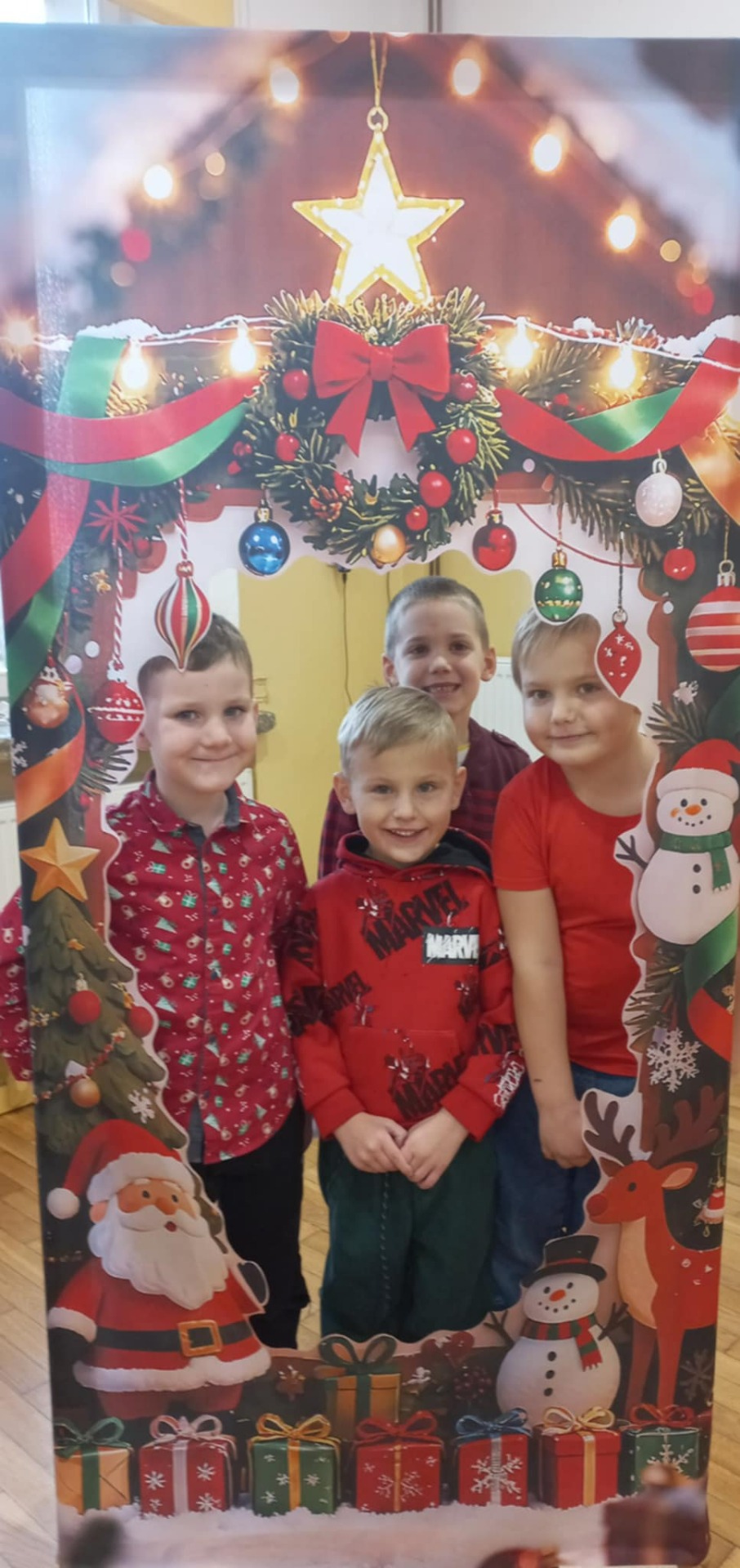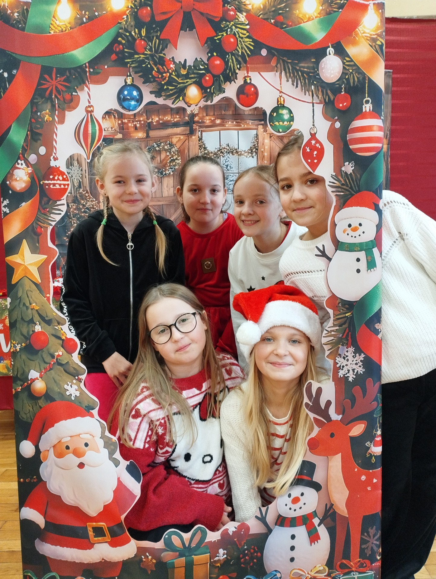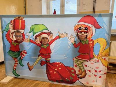 W tym roku czekała na uczniów dodatkowa atrakcja – świąteczna fotobudka. Dzieci mogły zrobić sobie pamiątkowe zdjęcia z Mikołajem oraz skorzystać z zabawnych, świątecznych rekwizytów.