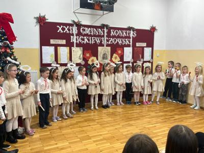 Miłym akcentem był występ dzieci z oddziału przedszkolnego, które zaśpiewały kolędę „Przybieżeli do Betlejem”. Na zakończenie uroczystości zostały złożone życzenia bożonarodzeniowe, wprowadzające wszystkich w świąteczny, pełen ciepła nastrój.