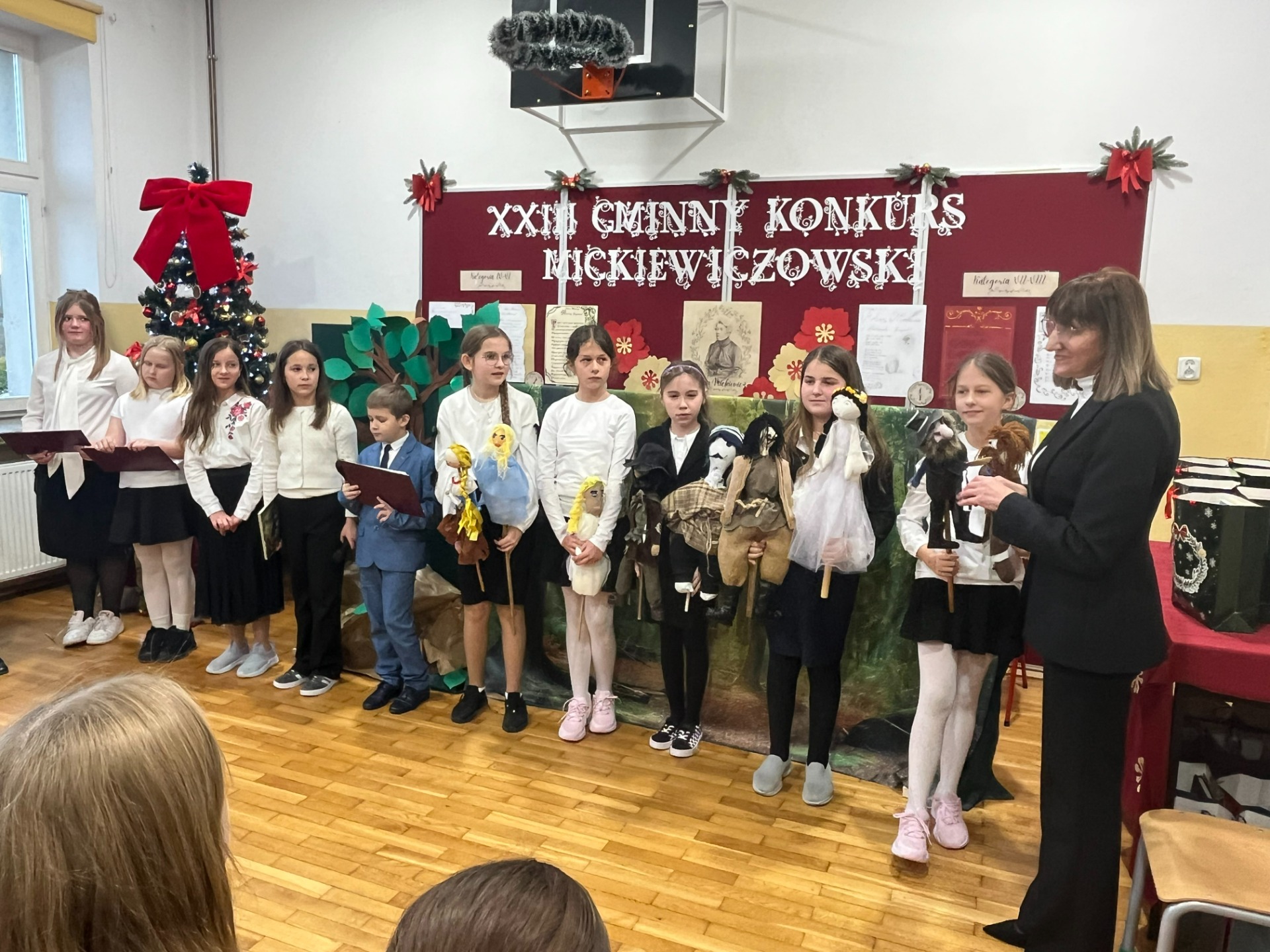 Dodatkową atrakcją był teatrzyk kukiełkowy „Powrót taty” oraz przedstawienie bajki Adama Mickiewicza „Przyjaciele” przygotowane przez uczniów naszej szkoły, które spotkały się z bardzo ciepłym przyjęciem publiczności i wprowadziły wszystkich w wyjątkowy, literacki nastrój.